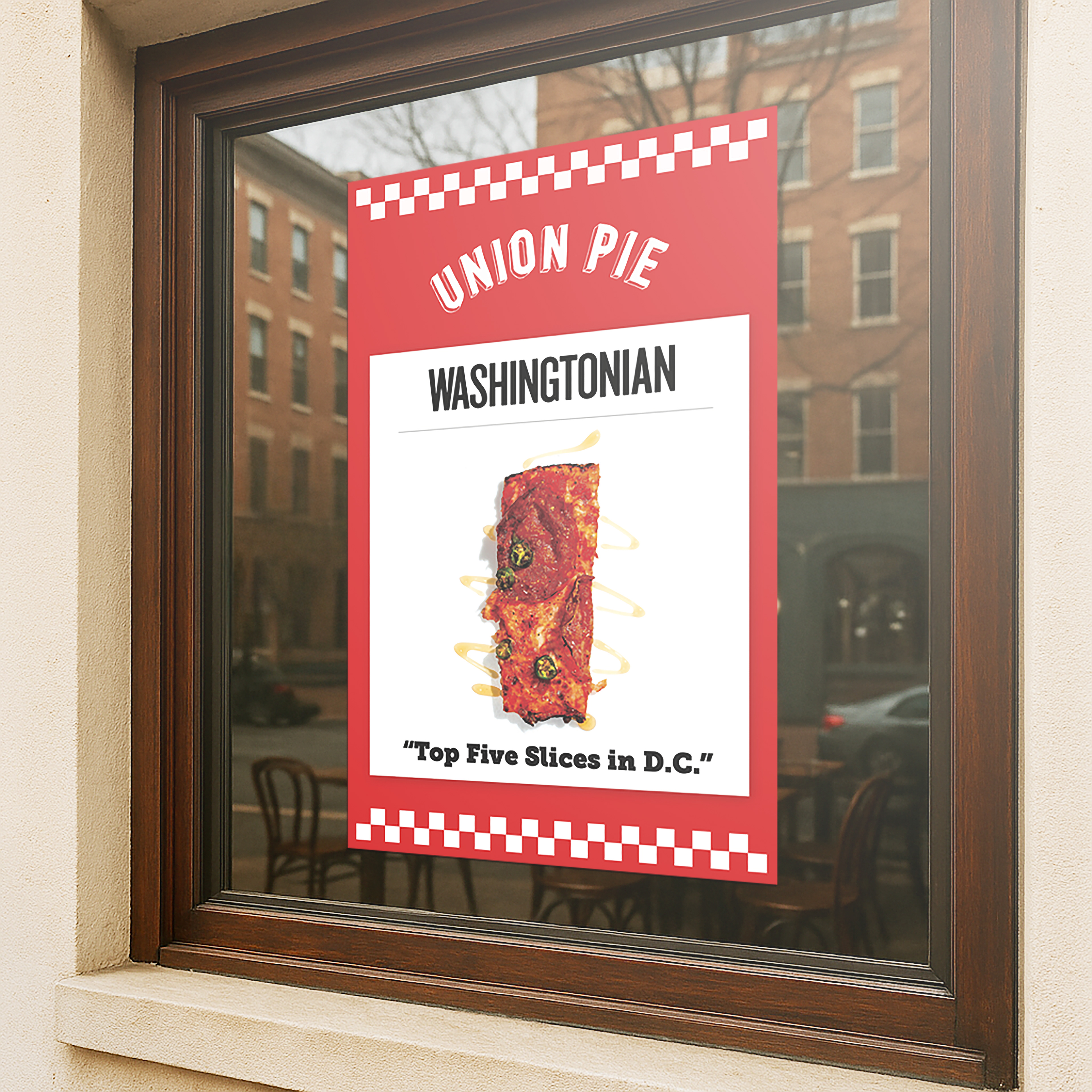 I was tasked with presenting a blurb from the Washingtonian in an eye-catching way that reflects Union Pie’s brand themes, to be displayed outside the restaurant's kiosk at The Wharf in Washington, DC.